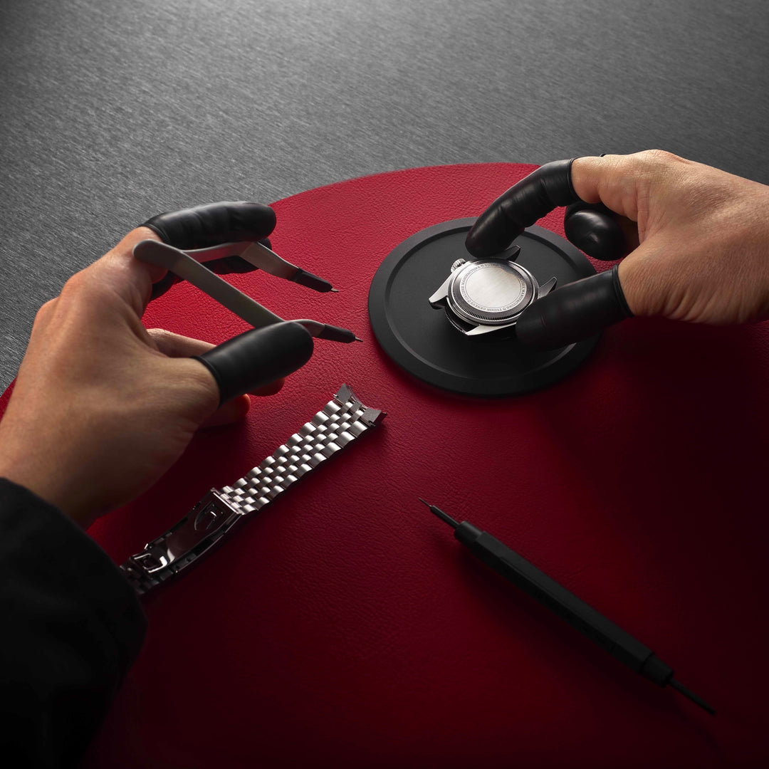TUDOR hält bewusst keinen Bestand von bereits montierten Uhren vor, sondern fertigt jede Armbanduhr individuell, um kurz darauf am Handgelenk eines Kunden getragen zu werden. Dies erfordert ein äußerst flexibles, dynamisches und vielseitiges Atelier. Dank fachübergreifender Schulungen sind die Uhrmacher in der Lage, jeden Montagevorgang perfekt zu beherrschen. Jede Werkbank ist gleich ausgestattet, von den Maschinen bis hin zum Material und der Organisation der Schubladen, um eine homogene und ergonomische Arbeitsumgebung zu schaffen und die Effizienz zu optimieren. In diesem dynamischen Umfeld ist jedes Teammitglied in der Lage, jede Referenz der TUDOR Kollektion zu montieren. Die Arbeit wird in Zellen organisiert, wobei jede Zelle die folgenden drei Vorgänge (in zeitlicher Reihenfolge) abdeckt: das Setzen des Zifferblatts, das Setzen der Zeiger und das Einschalen. Durch diese strukturierte Herangehensweise wird sichergestellt, dass jeder Schritt des Montageprozesses präzise und effizient durchgeführt wird, um die hohen Qualitätsstandards von TUDOR zu erfüllen.