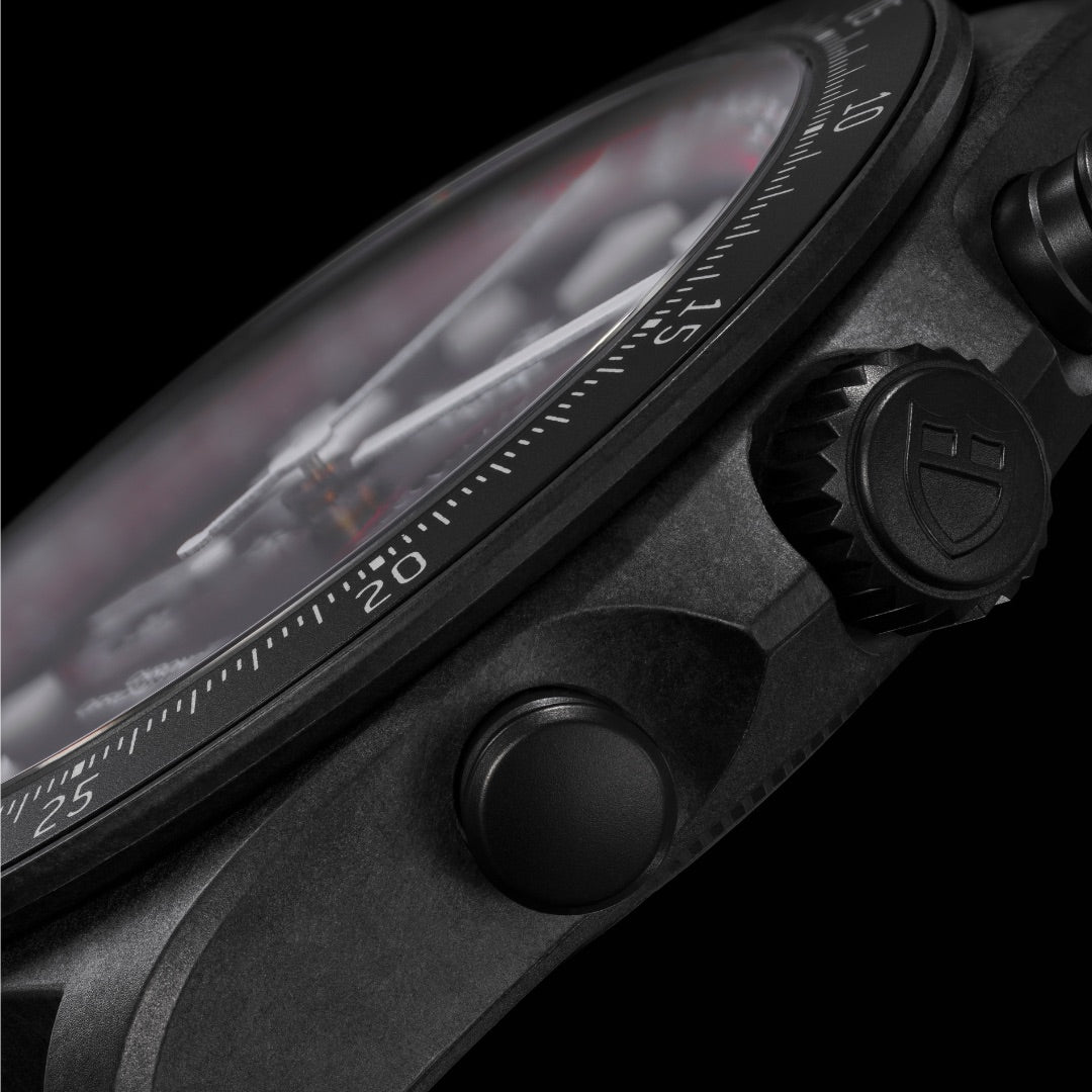 - Gehäuse von 43 mm in Carbon mit mattschwarzem Finish
