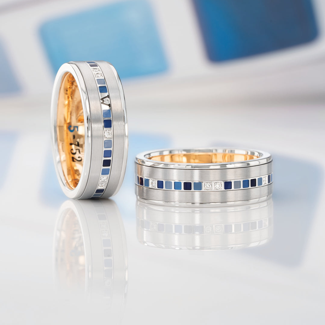 Männer sind einzigartig in ihren Vorlieben und ihrem Denken, und der Herren-Geburtstagsring 5-752 spiegelt diese Eigenschaften perfekt wider: Inspiriert von Motorsport, Zeitmessern und moderner Architektur, vereint er markantes Design, mattes Weißgold und royales Blau zu einem kraftvollen und eleganten Schmuckstück, das nur in 18 Karat Gold zu finden ist.