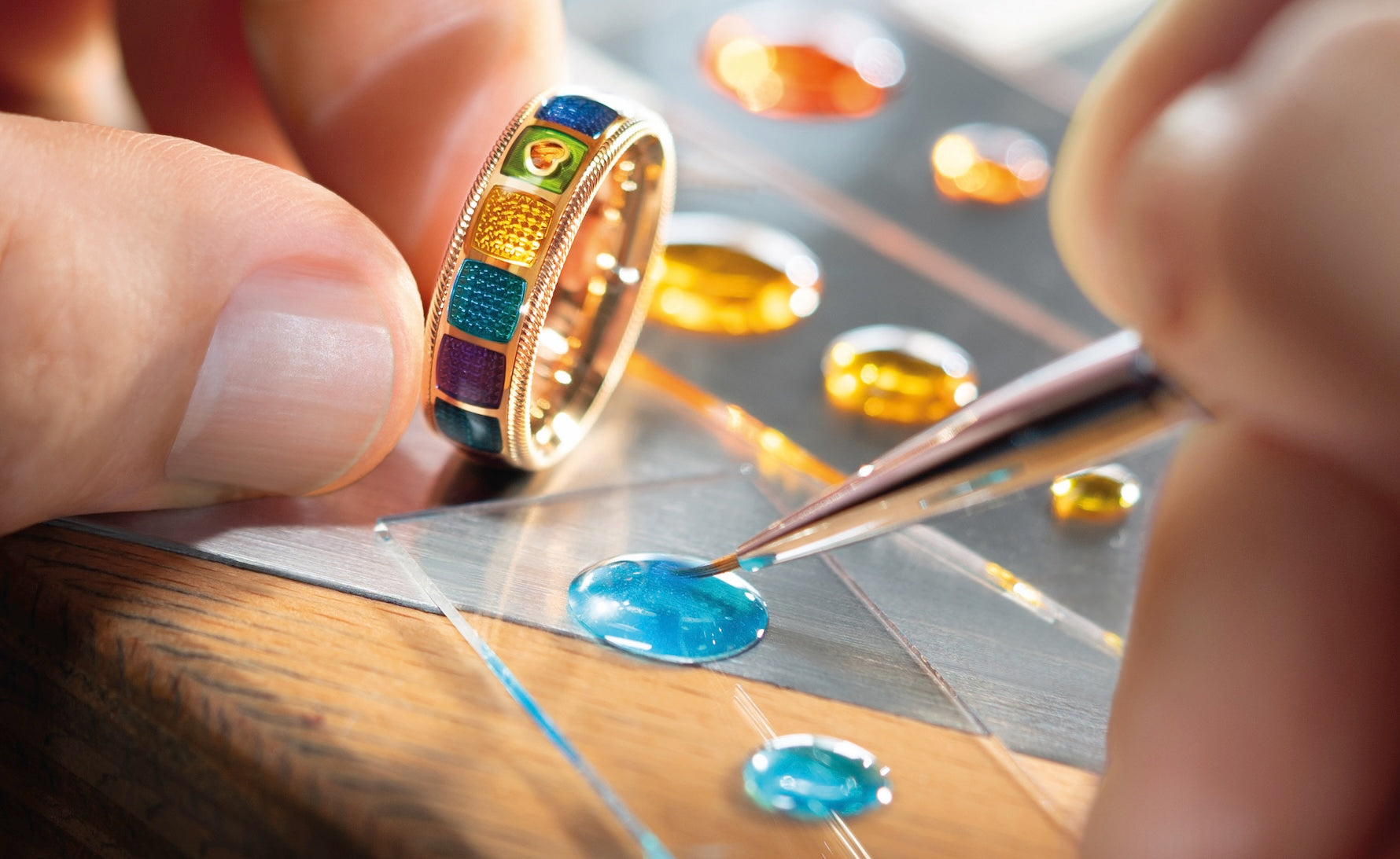- Acht neue Kaltemaillefarben: Die acht neuen Kaltemaillefarben werden von Hand in mehreren Schichten aufgetragen, mit höchster Präzision und einem UV-Test , um feine Farbnuancen zu erzielen und sicherzustellen, dass die Farben ein Leben lang halten.