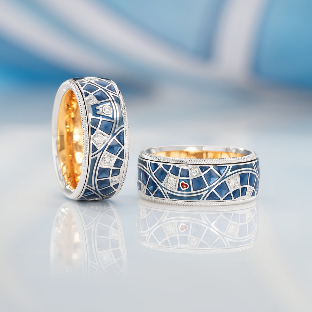 - Eine neue Gravurtechnik: Die neue tropfenförmige Gravurtechnik von Wellendorff symbolisiert den unvorhersehbaren Weg des Lebens, während präzise Werkzeugarbeiten und individuelle Modelle für jede Ringgröße sicherstellen, dass die Kaltemaille fest hält