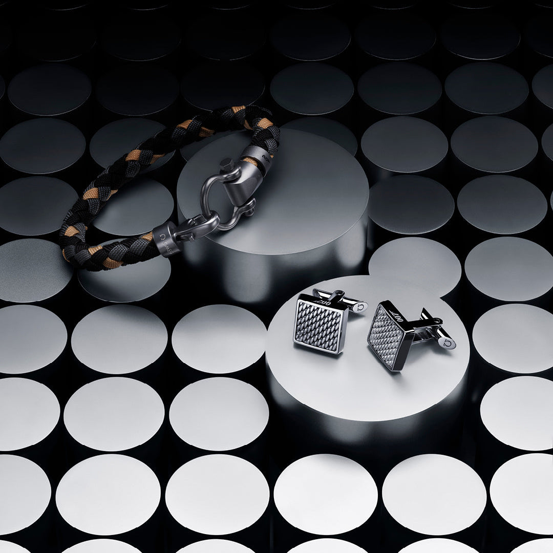 Diese quadratischen Manschettenknöpfe aus Edelstahl sind von Bonds Milanaise-Armband aus „Keine Zeit zu sterben“ inspiriert. Die fein strukturierte Oberfläche in Milanaise-Optik verleiht dem Design eine markante, maskuline Eleganz. Der umlaufende Rahmen trägt eine Gravur des ikonischen 007-Logos – ein dezenter Hinweis auf Stil und Abenteuer. Die OMEGA Accessoires-Kollektion ist eng mit den Uhrenlinien der Marke verbunden und vereint Kreativität, Präzision und charakteristisches Design.