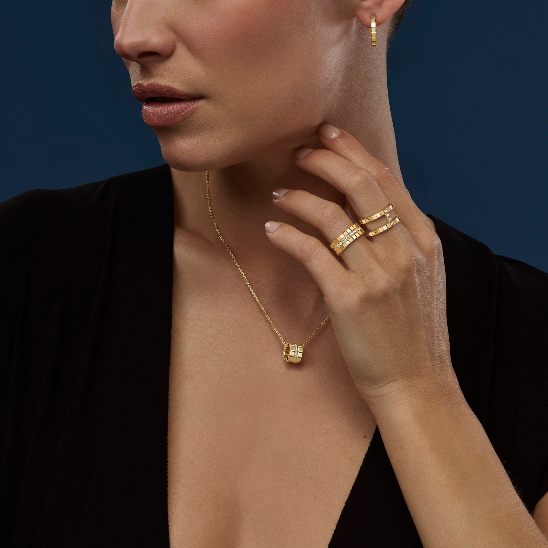 Seit ihrer Einführung im Jahr 1999 bot die „Ice Cube“ -Kollektion mehrere Interpretationen ihrer modernen Ästhetik, die von winzigen Eisblöcken inspiriert ist. Eine Form mit revolutionärer Ästhetik und dem unendlichen Glitzern des Lichts, das sich in den vielen Facetten bricht.